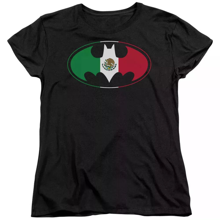 Grab your Batman Mexican Flag Shield 100% Cotton Women's T-Shirt today and wear your Gotham pride with comfort and style!
