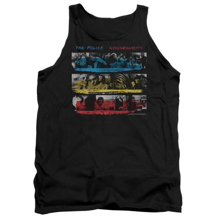 This The Police synchronicity men's tank top, has the fifth and final album cover by the band released in 1983 on the front. Front print only.